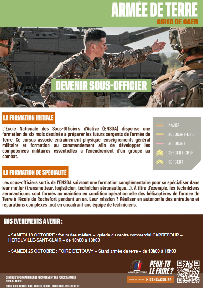 Se renseigner sur l'armée à partir de ce lien : https://www.defense.gouv.fr/terre